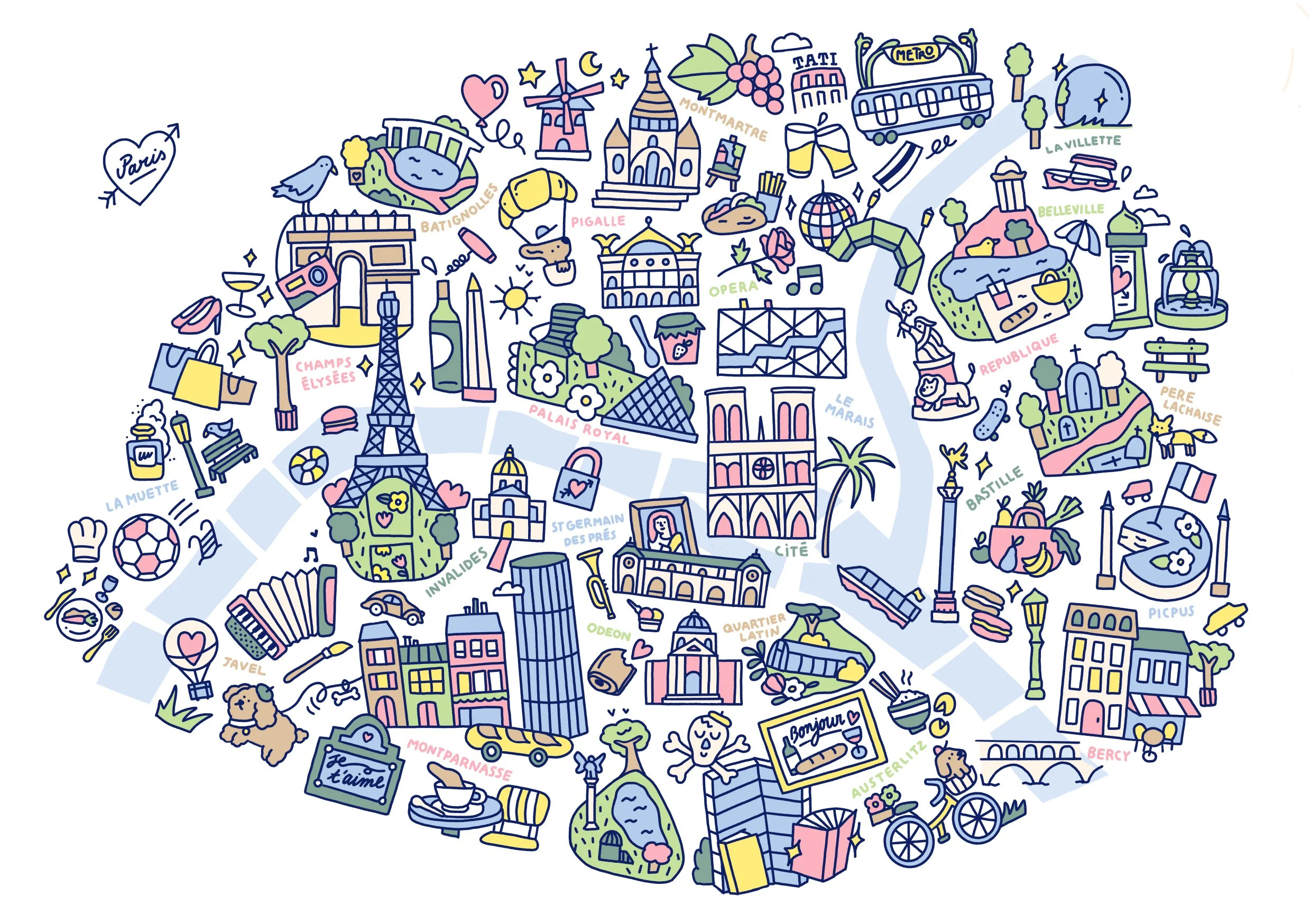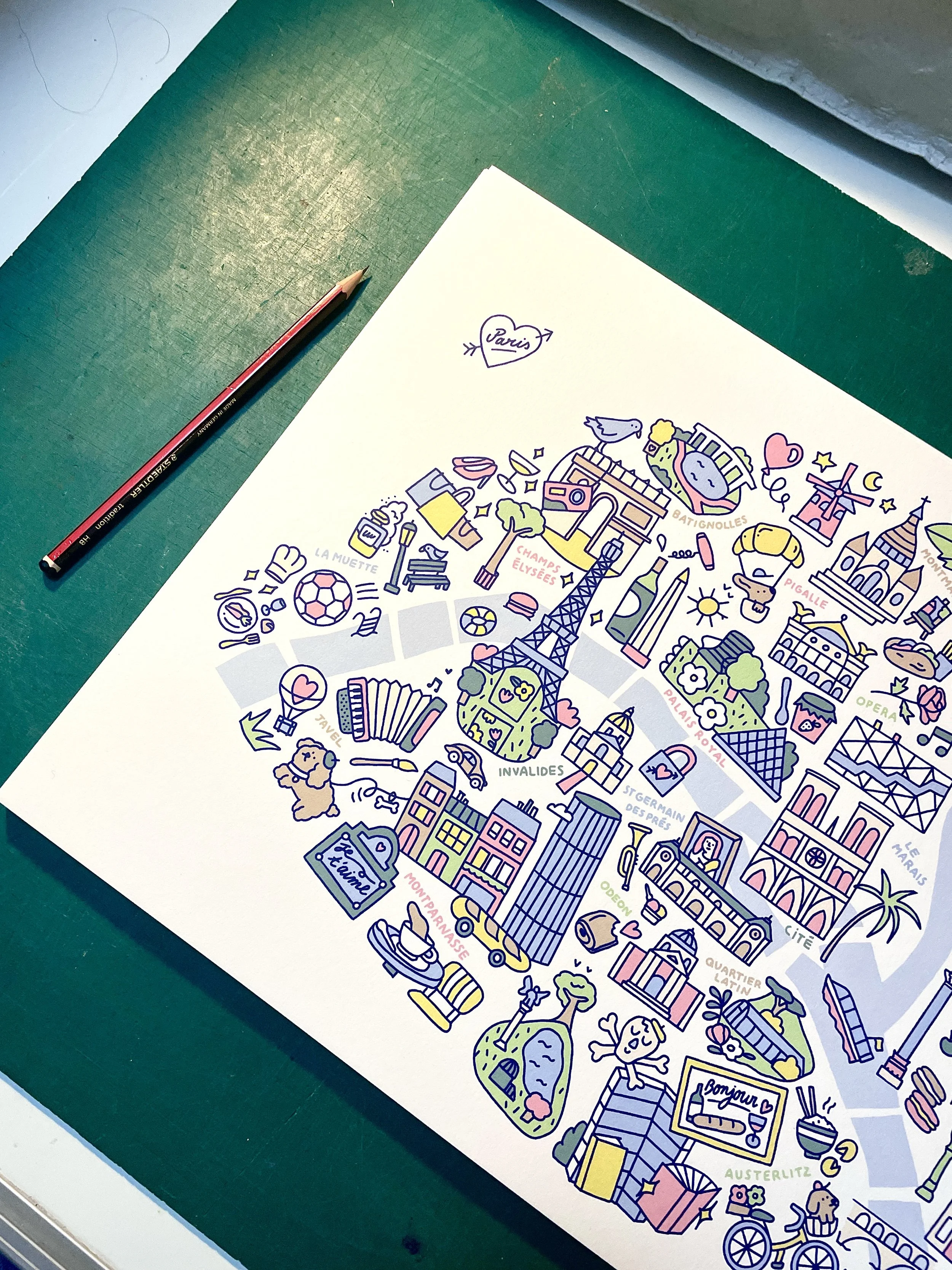 ARTAZART 2024 — Paris / Librairie Artazart → Création d’une carte de Paris à l’occasion des J.O de Paris 2024. EN VENTE ICI ! :)