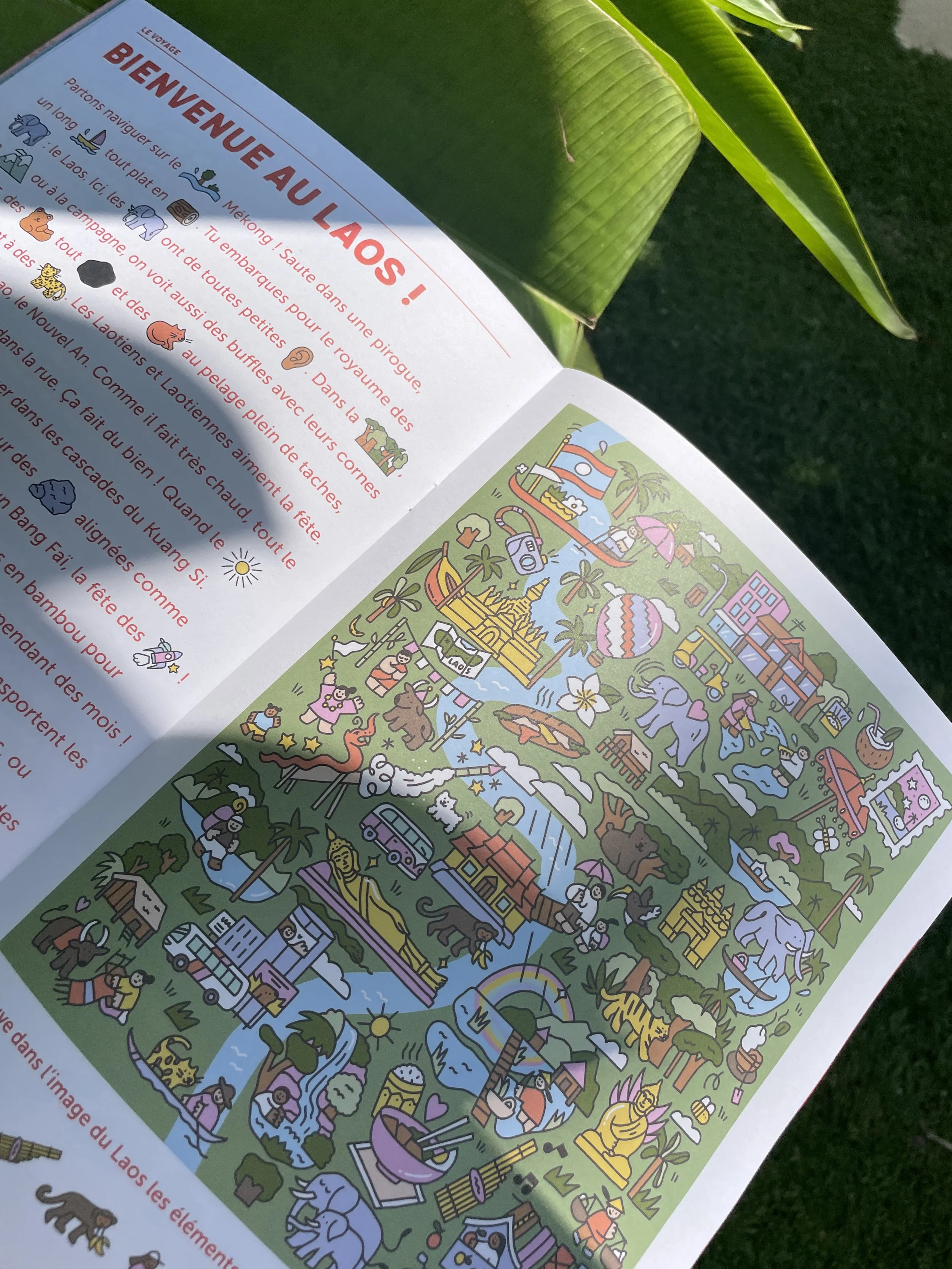 illustration — carte — presseIllustration d’une double page dans le Graou Magazine et d’une carte du Laos.
